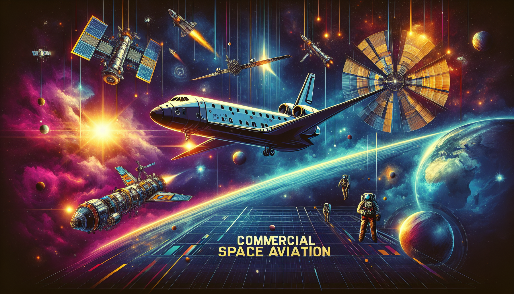 La aviación espacial comercial se refiere a las actividades relacionadas con el diseño, producción, y manejo de tecnologías espaciales con fines de lucro. Esto incluye el lanzamiento de satélites, el turismo espacial, la minería de asteroides, y otros servicios como la investigación espacial llevada a cabo por entidades privadas. La participación de compañías privadas en la exploración espacial es un fenómeno relativamente reciente, marcado por el éxito de empresas como SpaceX, Blue Origin y Virgin Galactic, entre otras.